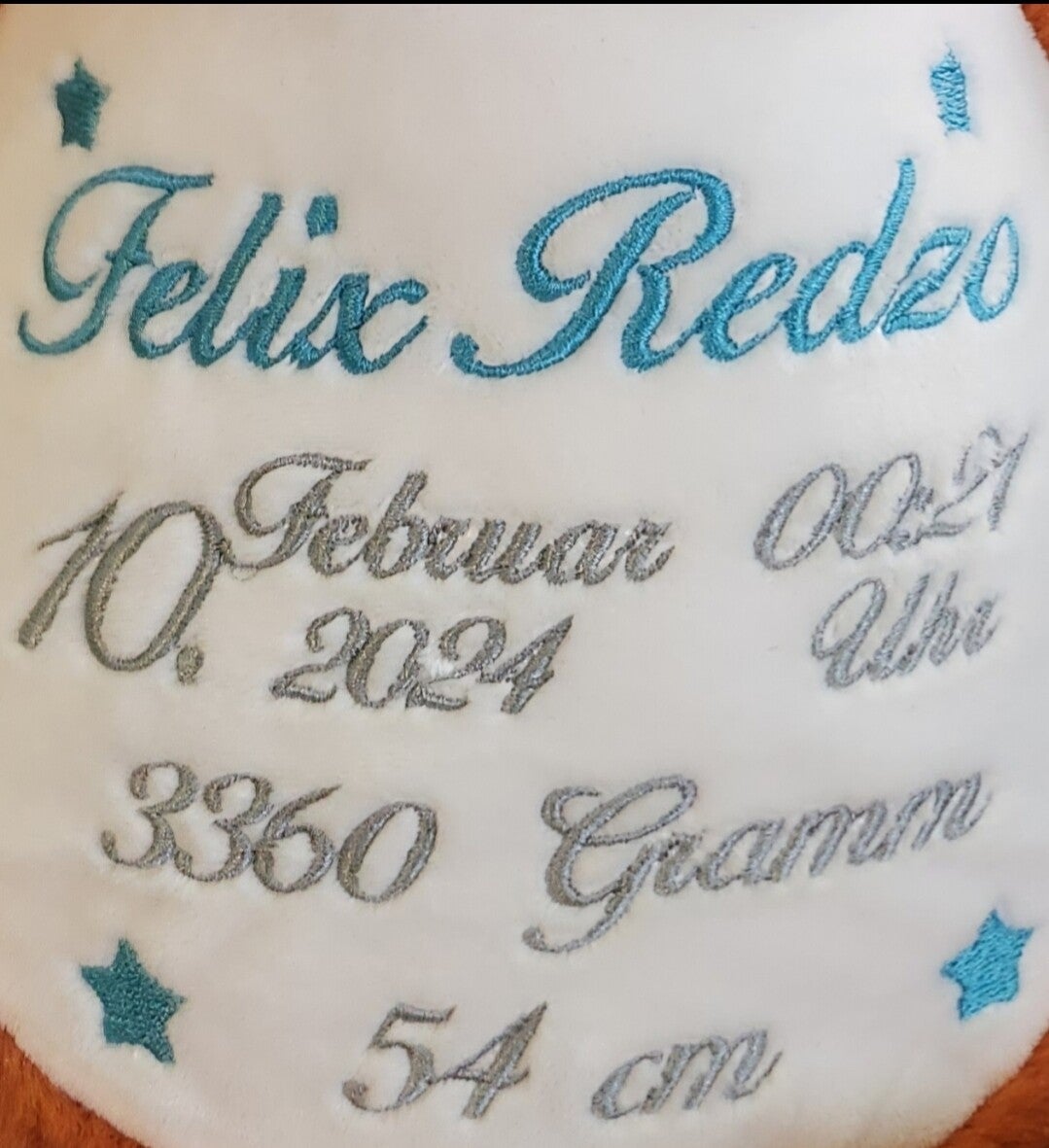 Kuscheltiere sollten im bestickten Zustand nur als Deko genutzt werden. Kein Spielzeug für Babys.!!!