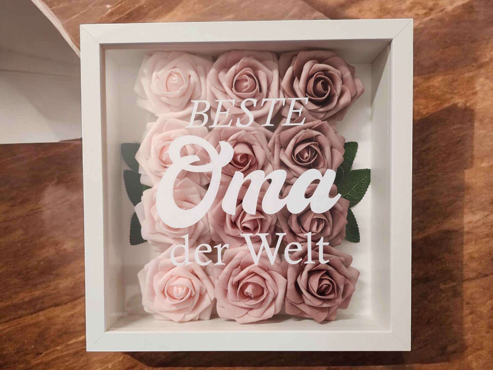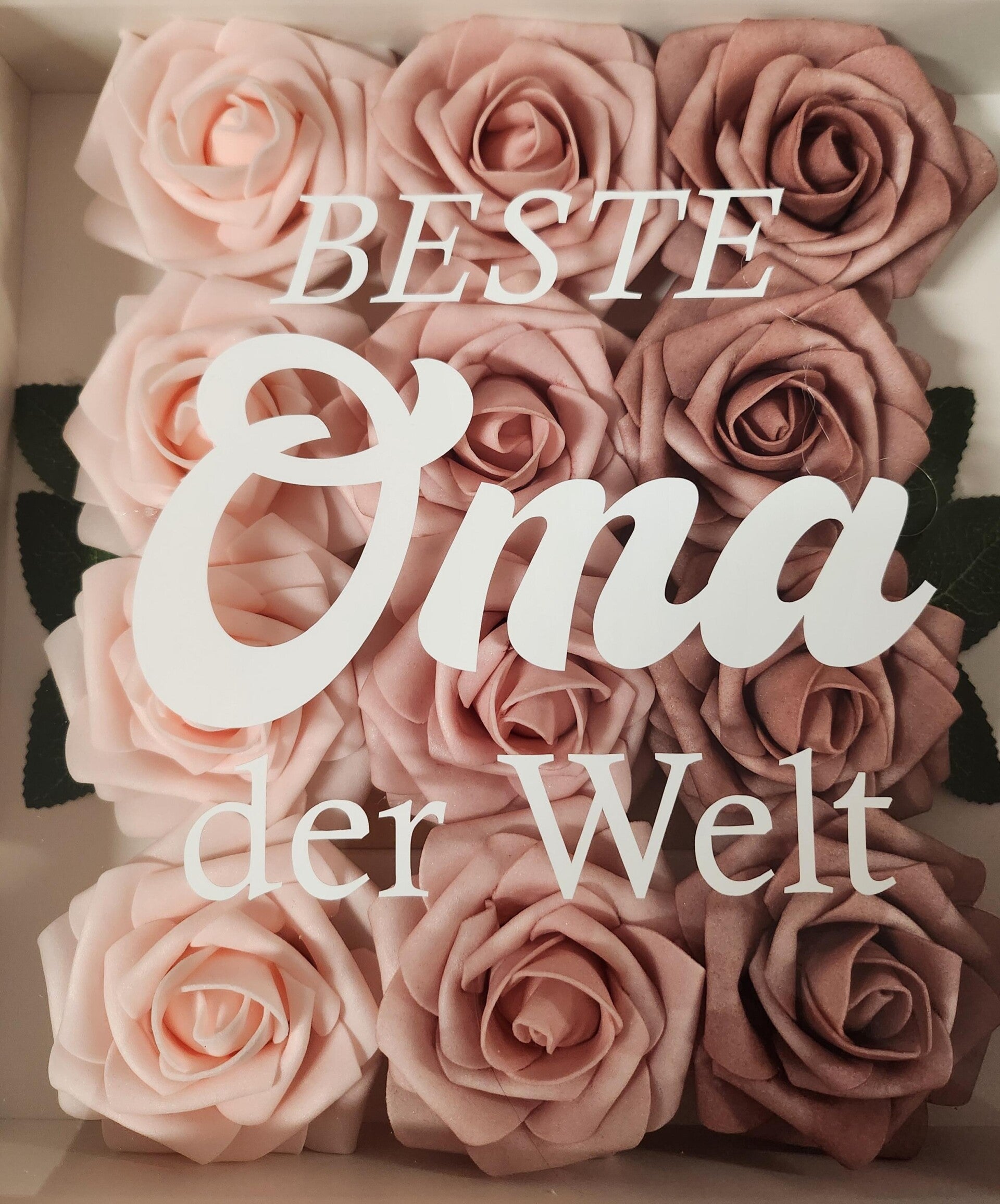 Rosenrahmen, Schattenbox, Bilderrahmen mit Blumen, Geschenke zu Muttertag, Geburtstag "Beste Oma der Welt"